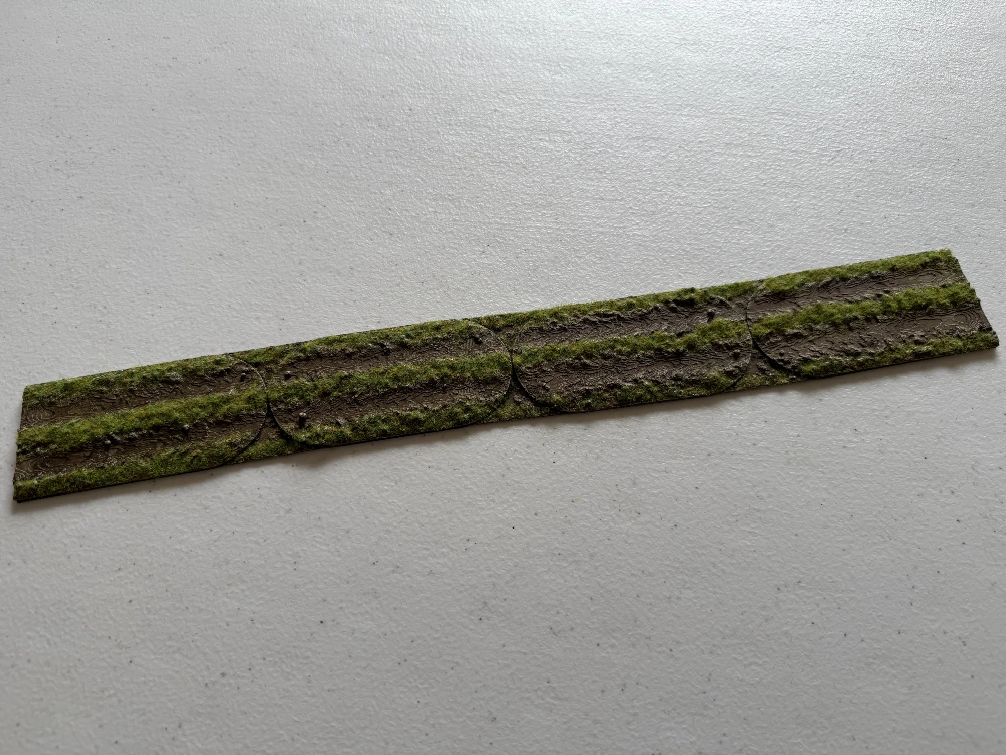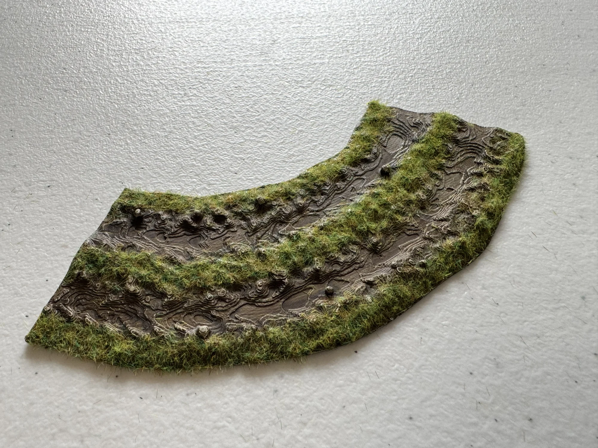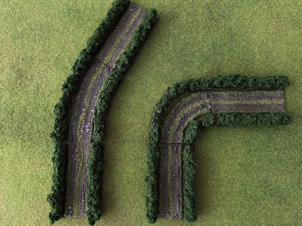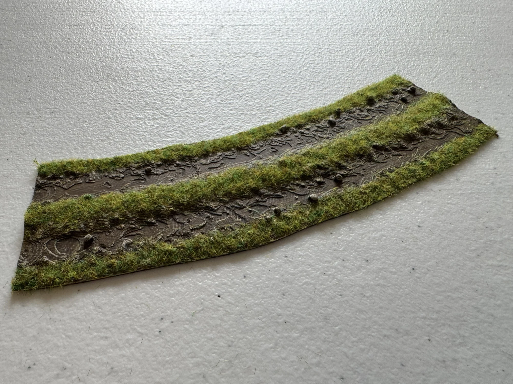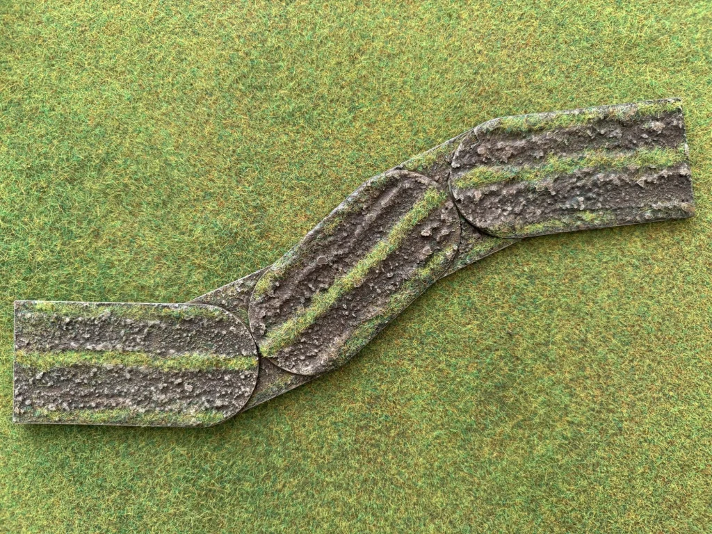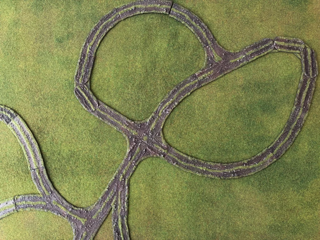 To solve this, articulated Dirt Road sections were developed. These flexible pieces can be gently adjusted and twisted, allowing them to bridge gaps and connect different road segments seamlessly. This makes it easy to create complex, free-flowing road networks while maintaining a natural and believable appearance across the battlefield.