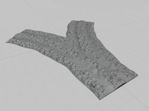 | 30 Degree Turn | DR-M-002 | A section of dirt road turning through 30 degrees and modelled with a mud and rocks texture covering its surface. | Dirt Roads | 30 Degree Turn | ||