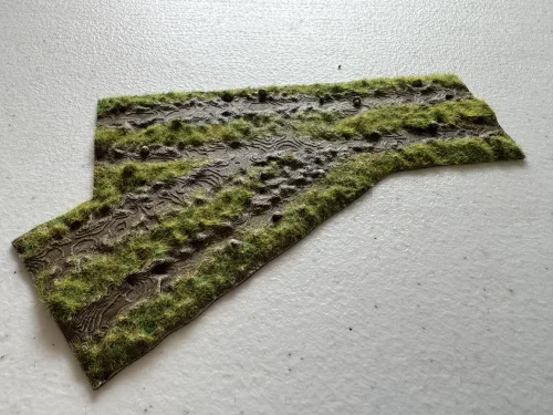 | Left Hand Slip Road (Plain) | DR-M-020 | A section of dirt road connecting a left hand slip road onto the main road at a 30 degree angle. The mud and rock texture has been removed, leaving a smooth base designed for hobbyists who want to apply their own basing textures and terrain finishes. | Dirt Roads | Left Hand Slip Road (Plain) | ||
