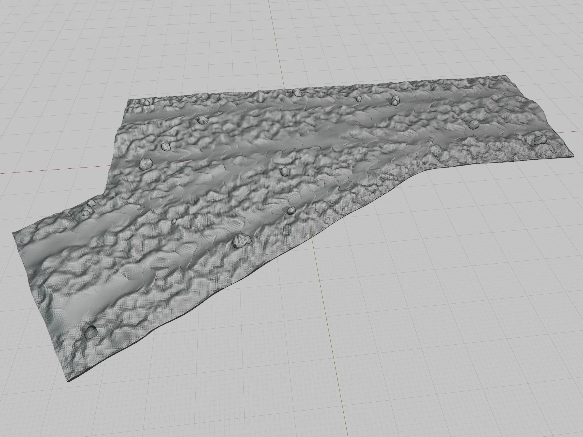 | 90 Degree Turn | DR-M-004 | A section of dirt road turning through 90 degrees and modelled with a mud and rocks texture covering its surface. | Dirt Roads | 90 Degree Turn | ||