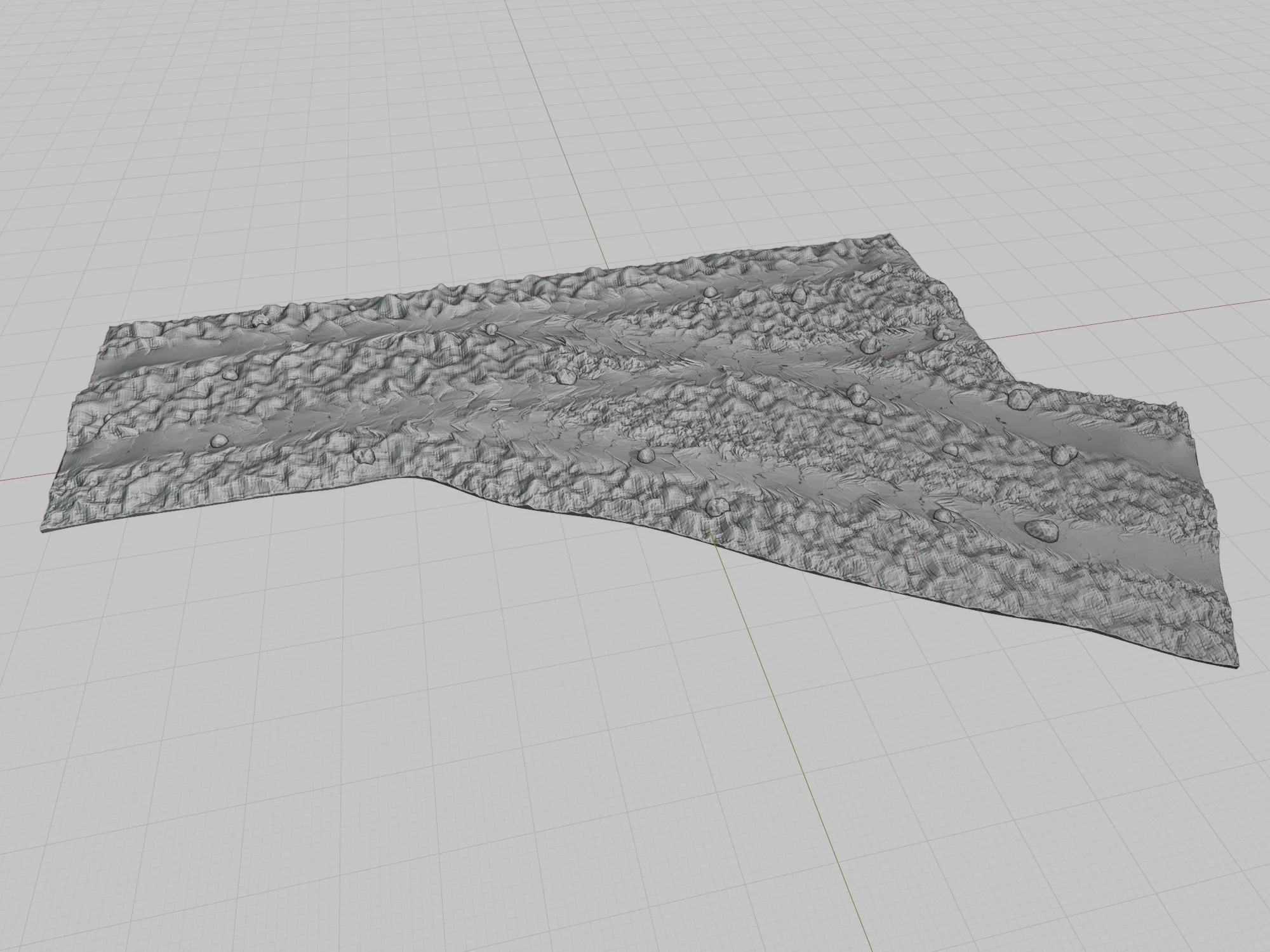 | 6 Inch Straight - v3 | DR-M-001-C | A-6 inch straight piece of dirt road modelled with a mud and rocks texture covering its surface. To avoid repetition on long straight pieces of road, 4 variants of this model have been created with this being variant 3. | Dirt Roads | 6 Inch Straight - v3 | ||