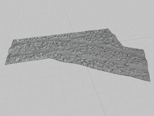 | 30 Degree Turn | DR-M-002 | A section of dirt road turning through 30 degrees and modelled with a mud and rocks texture covering its surface. | Dirt Roads | 30 Degree Turn | ||