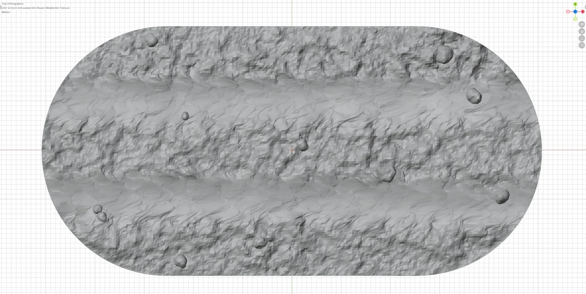 | 6 Inch Straight - v3 | DR-M-001-C | A-6 inch straight piece of dirt road modelled with a mud and rocks texture covering its surface. To avoid repetition on long straight pieces of road, 4 variants of this model have been created with this being variant 3. | Dirt Roads | 6 Inch Straight - v3 | ||