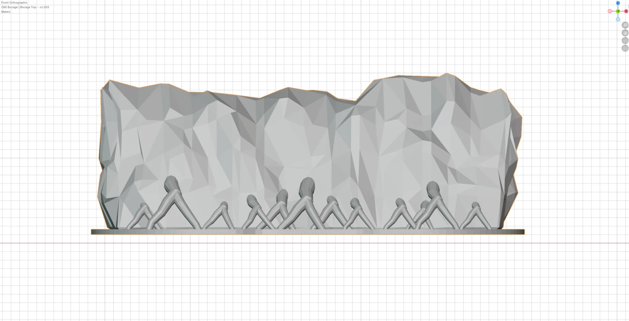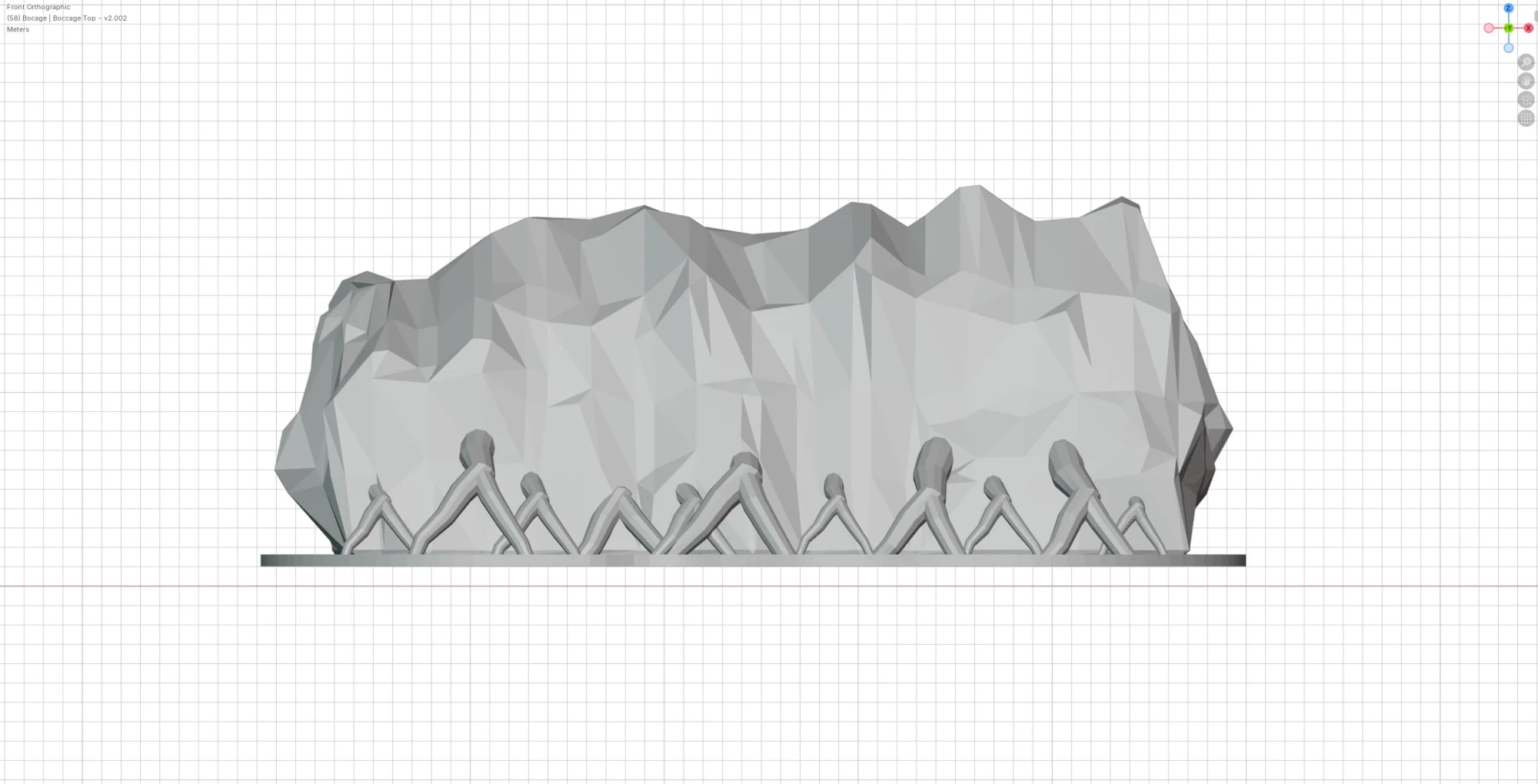| Bocage Top - v1 | BO-P-007-A | A decorative top layer component containing a main block structure to hold clump foliage bocage, modelled with a twisted root structure to give the impression of dense bocage once decorated. To provide variation in longer articulated bocage sections, four variants of this part have been designed, with this being variant 1. | 1 | |