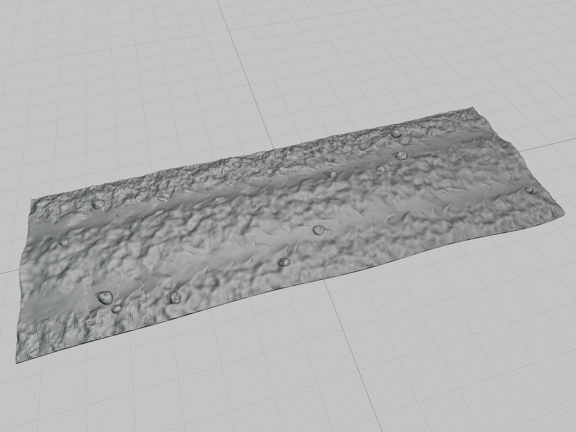 A-6 inch straight piece of dirt road modelled with a mud and rocks texture covering its surface. To avoid repetition on long straight pieces of road, 4 variants of this model have been created with this being variant 4.