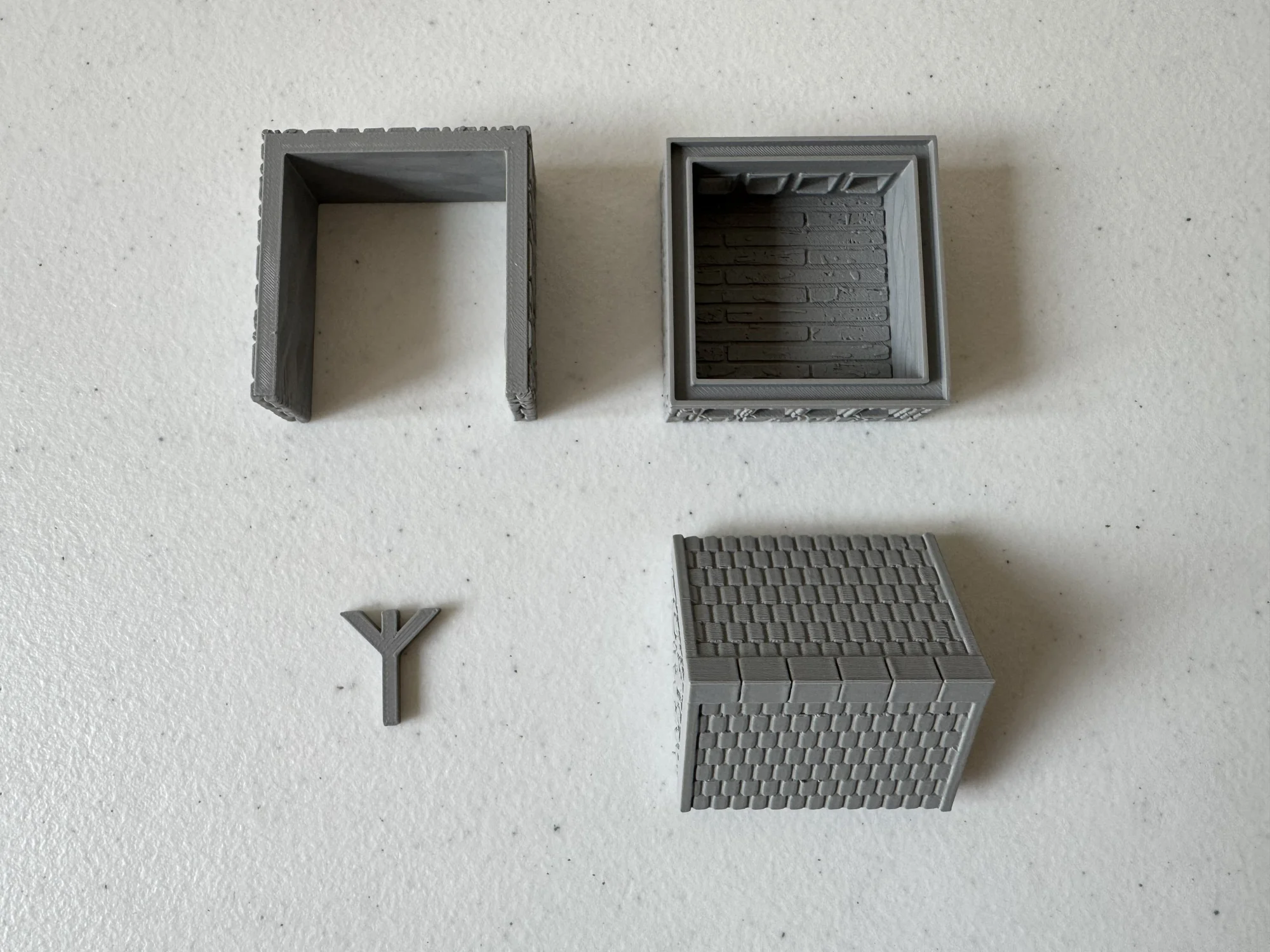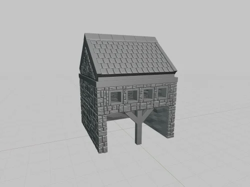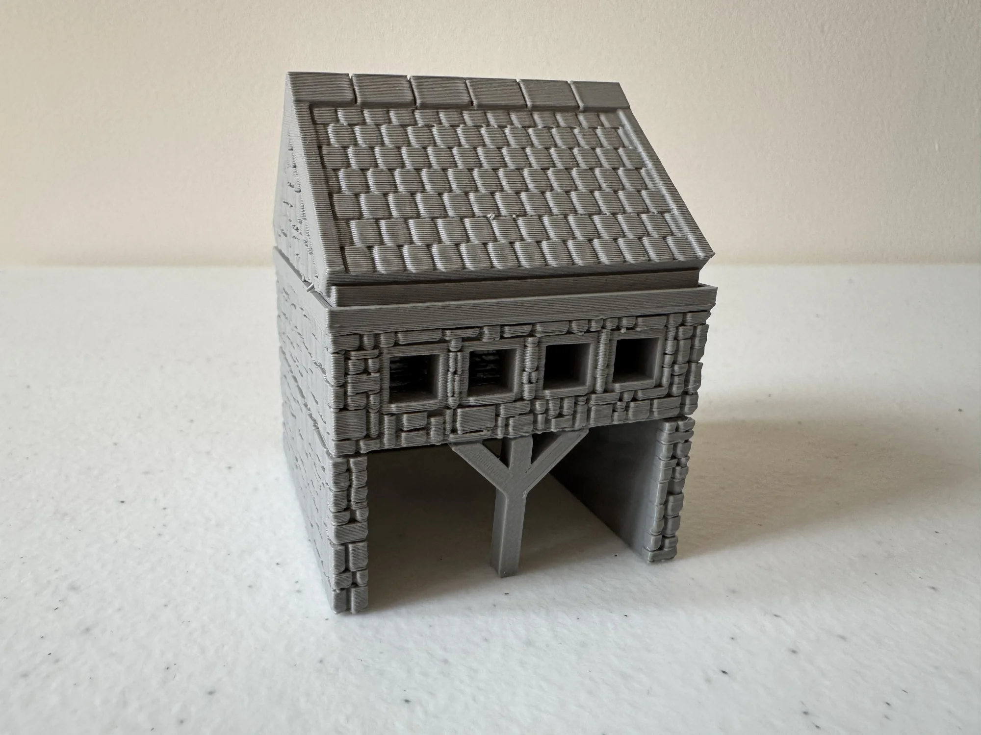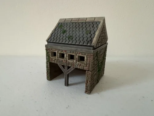 A two-storey garage featuring a wooden support beam supporting the upper floor. Includes a detachable roof, allowing units to take up elevated firing positions within the structure. Measures 2 inches in length, allowing it to align seamlessly with the 2-inch wall sections. Requires light sub-assembly.