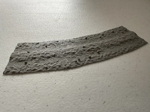 | 12 Inch Articulating Dirt Road (Plain) | DR-M-023 | An articulating section of dirt road comprised of 3 sections for a total length of 12-inches. The flexible nature of this model allows complex organic dirt road layouts to connect seamlessly. In this plain version, the mud and rock texture has been removed, leaving a smooth base designed for hobbyists who want to apply their own basing textures and terrain finishes. | Dirt Roads | 12 Inch Articulated Dirt Road (Plain) | ||